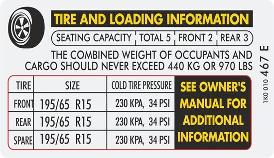 MK6 Golf R32 / GTI Tyre Pressure replacement Decal / Sticker