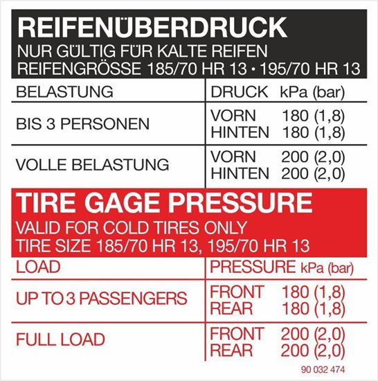 Opel Manta B / Kadett C replacement Tire Pressure Decal / Sticker